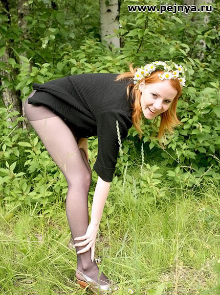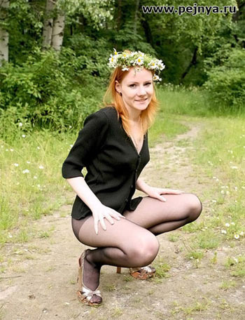 На природе в одних колготках
