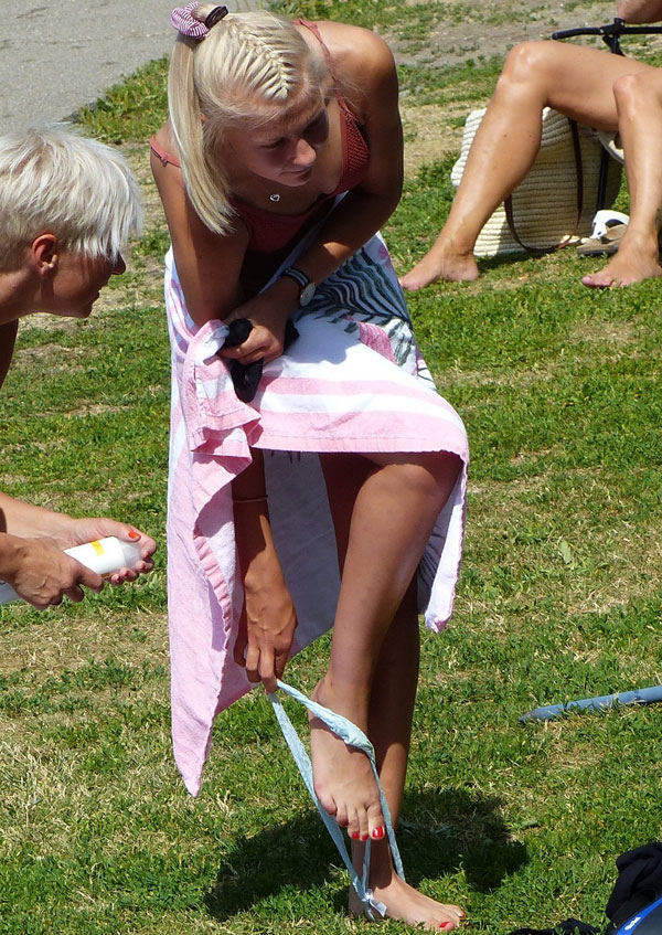 Девушки переодеваются на пляжу (7)