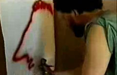 Чувак рисует своей кровью.