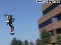 Показателный полет человека с ракетным ранцем.