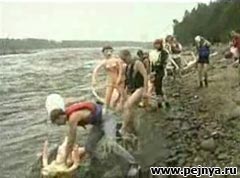 Соревнования по спуску по реке на надувных бабах.