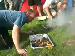 Конкурс. Достань ртом сосиську из костра.