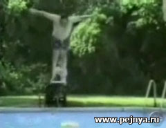 Видео про толстого парня и малюсенький, надувной круг.