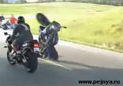 Мотоциклист перевернулся.