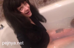 Девочка не снимая одежды залезла в ванну и моется. Очень сексуально