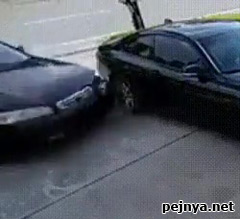 В милиметре у припаркованной машины