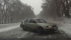 Прикольная авария на гонках.