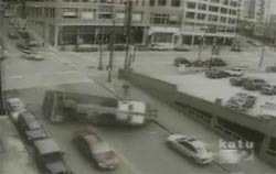 Авария где грузовик просто сносит несколько легковушек.