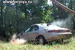 Чуваки в хлам разхерачивают машину, растреливают ее из различного оружия, а она еще и заводится.