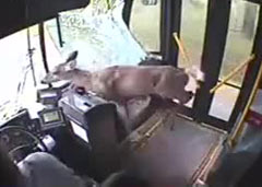 Водитель автобуса сбивает оленя