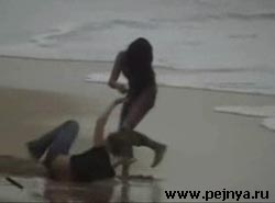Драка девушек на пляже. Смотрится охренеть как рамонтично.