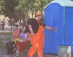 Мужик дико срет в биотуалете.